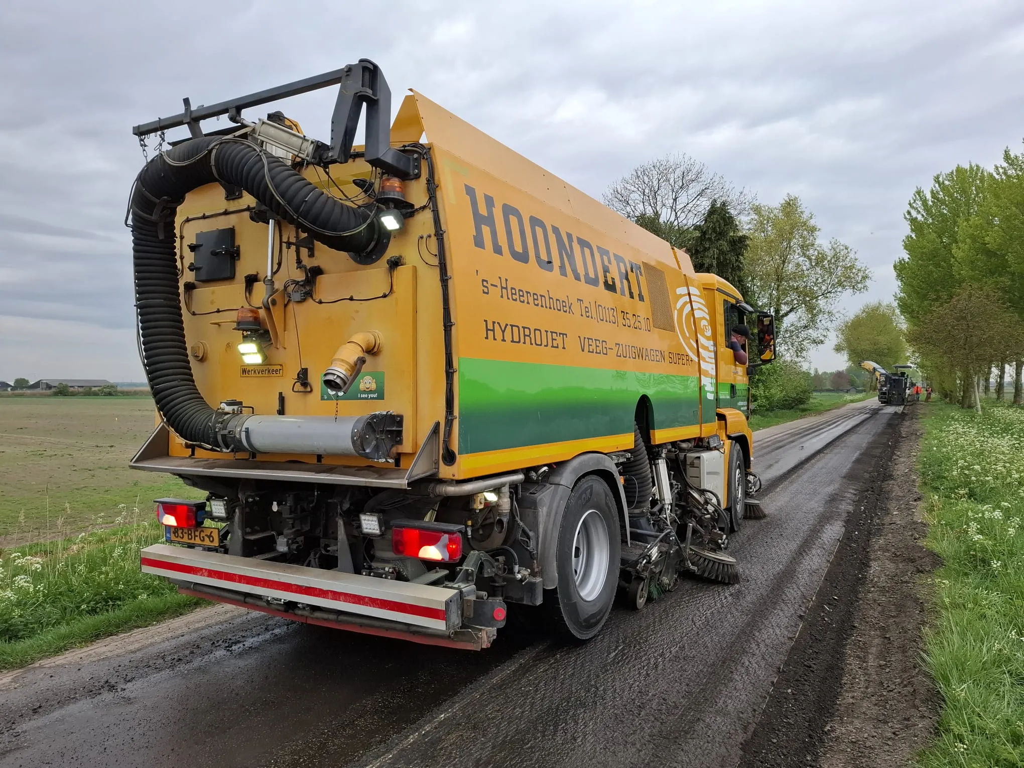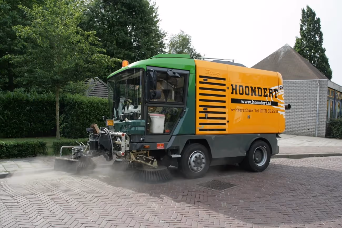 Onze compacte veegmachines zijn ideaal voor moeilijk bereikbare plekken zoals smalle doorgangen of fietspaden. Dankzij hun wendbaarheid leveren ze snelle en grondige resultaten. Voor grotere oppervlakken zetten wij veegzuigauto’s met hogedrukreiniging in. Deze zijn uitgerust met een zuigbalk met roterende hogedrukstralen, waardoor zelfs de diepste poriën van het asfalt grondig worden gereinigd. Zo combineren wij efficiëntie met kwaliteit en zorgen we altijd voor een schoon en verzorgd resultaat.